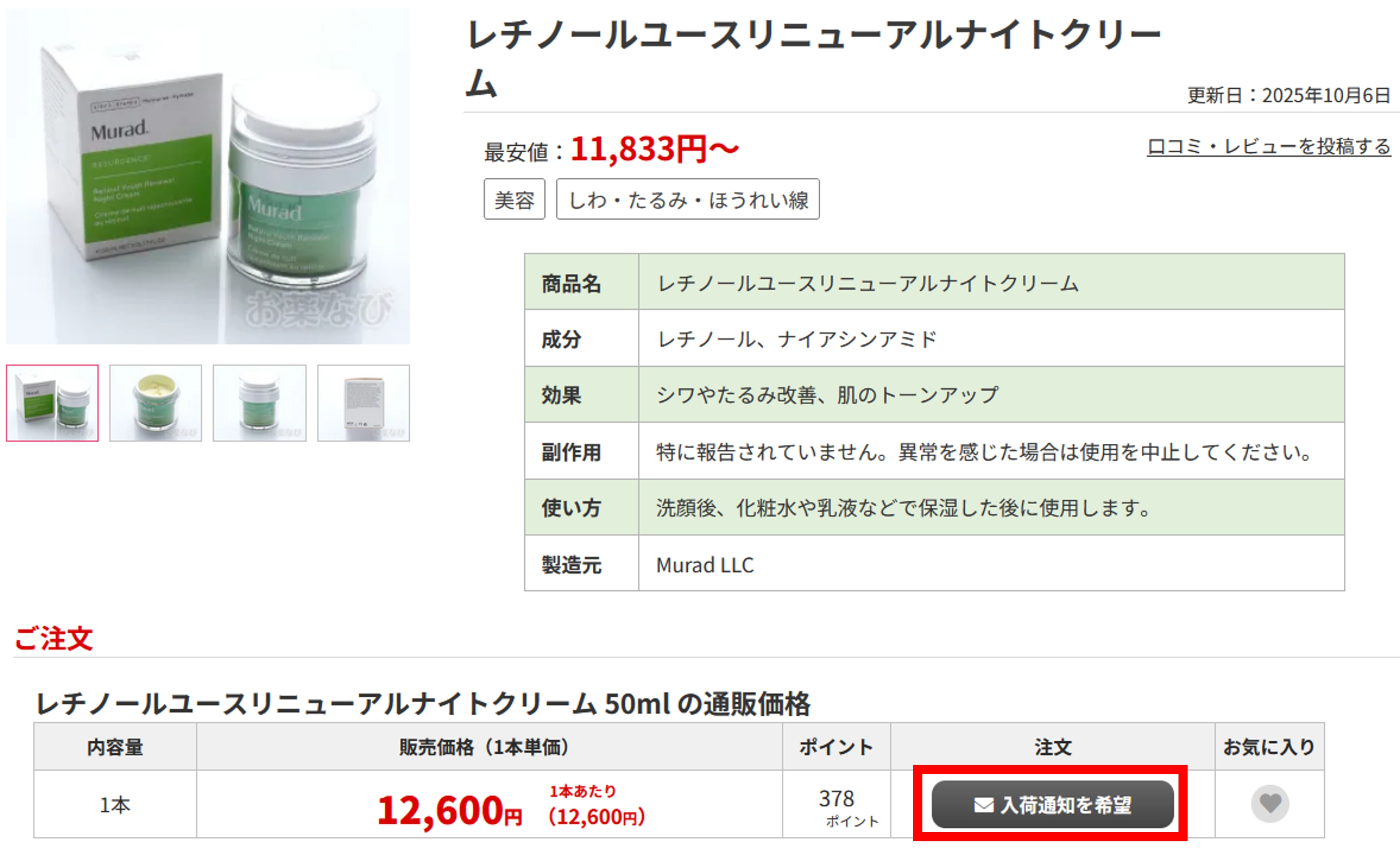 ・未会員、ログイン前の状態で入荷通知の設定はできません。
