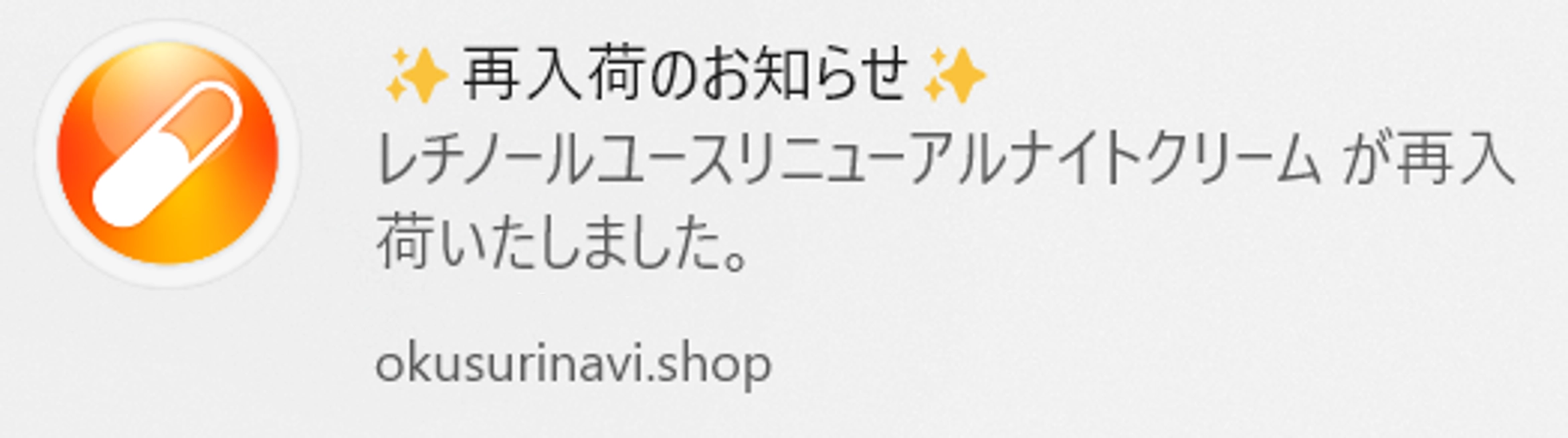 メールだけでなくプッシュ通知でも入荷通知を受け取ることができます。プッシュ通知なら、アプリを開いたり、メールフォルダをチェックしたりする手間が省けます。