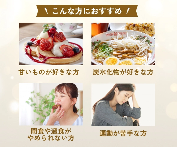 食欲を抑え、満腹感が継続し、食後の血糖値の急上昇を抑えることで太りにくい体質に。