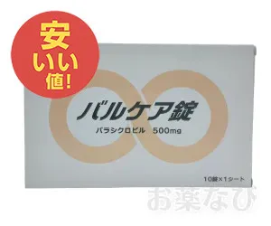 | 在庫 | 現在欠品中です。3月中旬入荷予定。 類似商品は以下をご覧ください。 ・バルクロビル:バルトレックスのジェネリック医薬品。 |