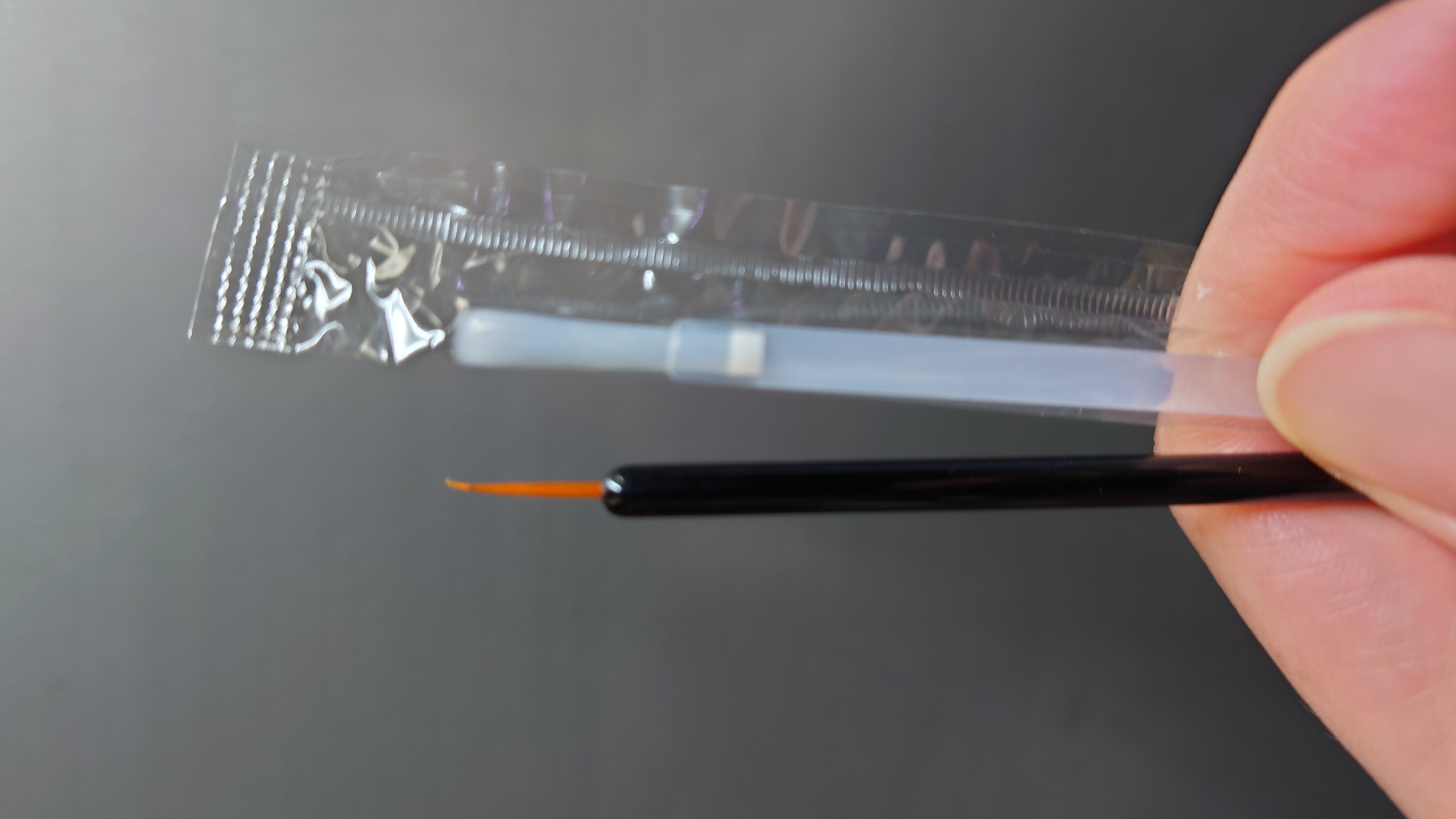 届いた商品はブラシの毛が針のように細く、ブラシに垂らしたルミガンを弾いてしまいます。