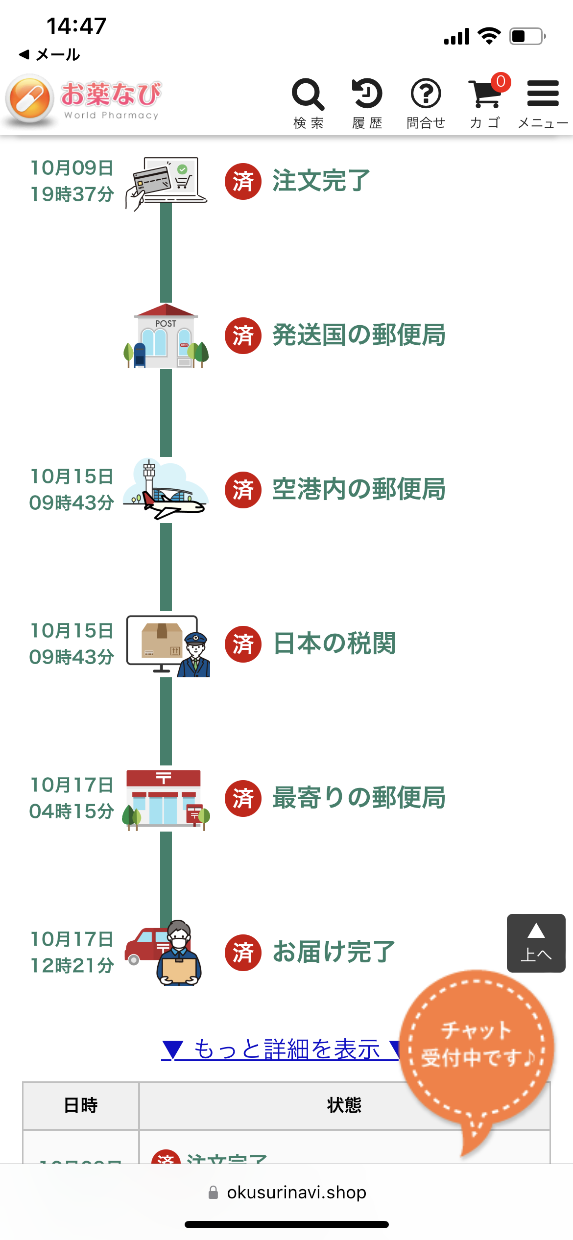 後日問い合わせると発送元の手違いでこれから再度手配を行うとの事。