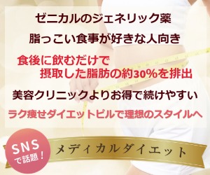初めてゼニカルのジェネリックを使います。日本のメーカーではないだろうけど日本語のパッケージになにか安心感を感じてこれに決めました。効果は外の方も言うように絶大。目に見える効果なので、私の場合は精神的にも楽になりました。実際一ヶ月で1.5kgほど体重が落ちています。私は通勤で長時間電車に乗ったりすることもなく、仕事もデスクワークなのでほぼいつでもトイレに立てる生活環境ですが、トイレの問題だけは気をつけたほうがいいですね。