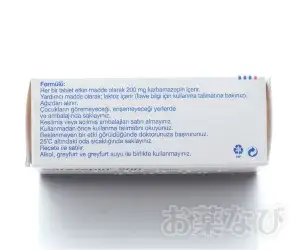 | 飲み方 | てんかん、躁うつ、統合失調症の興奮状態の場合1日200~400mgを初期用量として1~2回に分けて服用し、その後効果が得られるまで徐々に増量。三叉神経痛の場合1日200~400mgを初期用量として数回に分けて服用。 |