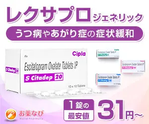 なんでもネットで買える時代なんですね。まさかうつ病の薬の代名詞であるレクサプロのジェネリック医薬品までも買えるなんて知らなかったです。この薬にはかなりお世話になっていたのですがネットで安く買えるので助かっています。今回このサイトで頼んだのは初めてなのですが対応がとても良いしなんて言っても値段がかなり安いので気に入っています。うつ病の薬なので長いお付き合いになると思うのでこれからもよろしくお願いします。