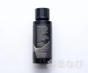 有効成分:デュタステリド 0.5%、アゼライン酸 1%その他成分:変性アルコール、プロパンジオール、ポリソルベート20、グリセリン、アロエベラ葉エキス、セトリモニウムクロリド、グリセリン、イソステアリン酸PEG-7ジメチコン、ジメチルイソソルバイド、デュタステリド、アゼライン酸、トリペプチド-1銅、Trichogen Blend(オタネニンジンエキス、アルギニン、アセチルチロシン、アルクチウムマジュス根エキス、加水分解ダイズタンパク、ポリクオタニウム-11 、PEG-12ジメチコン、パントテン酸Ca、グルコン酸亜鉛、ナイアシンアミド、オルニチンHCl、シトルリン、グルコサミンHCl、ビオチン)、ピロ亜硫酸Na