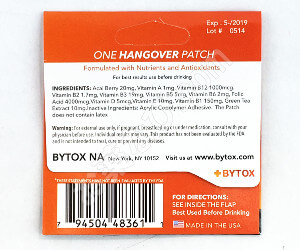 海外のお土産として友人から貰いました。この歳になってくると、若い頃の様な酒の飲み方をすると確実に二日酔いとの戦いになります。普段飲む前にウコン等を飲んでいます。ですが、結局のところ二日酔いです。しかし、この二日酔い予防パッチを貼るようになってから、圧倒的にウコン等比較対象にならない程の効果があります。接待等多い方にはオススメです。こんなに良いアイテムがあるなんて思いもしませんでした。私は必ず大人買いしています。