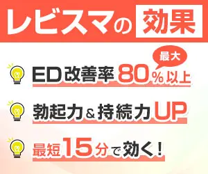 私個人のお話ですが、レビスマを服用したら割と早めの20分~25分くらいから効果があり硬さも十分でした。それに伴い副作用の鼻づまりがありましたが、そこまで気にするほどでもなかったです。この日は風俗dayだったのでいつも指名している彼女からも「いつもより硬くない?」と言われるほどビンビン状態でした。先に私がイってしまうのですがこの日は彼女を先にイかせることができ、終わった後も立ったままでしたので初の2回戦までできるようになりました。レビスマを買って良かったと思います。